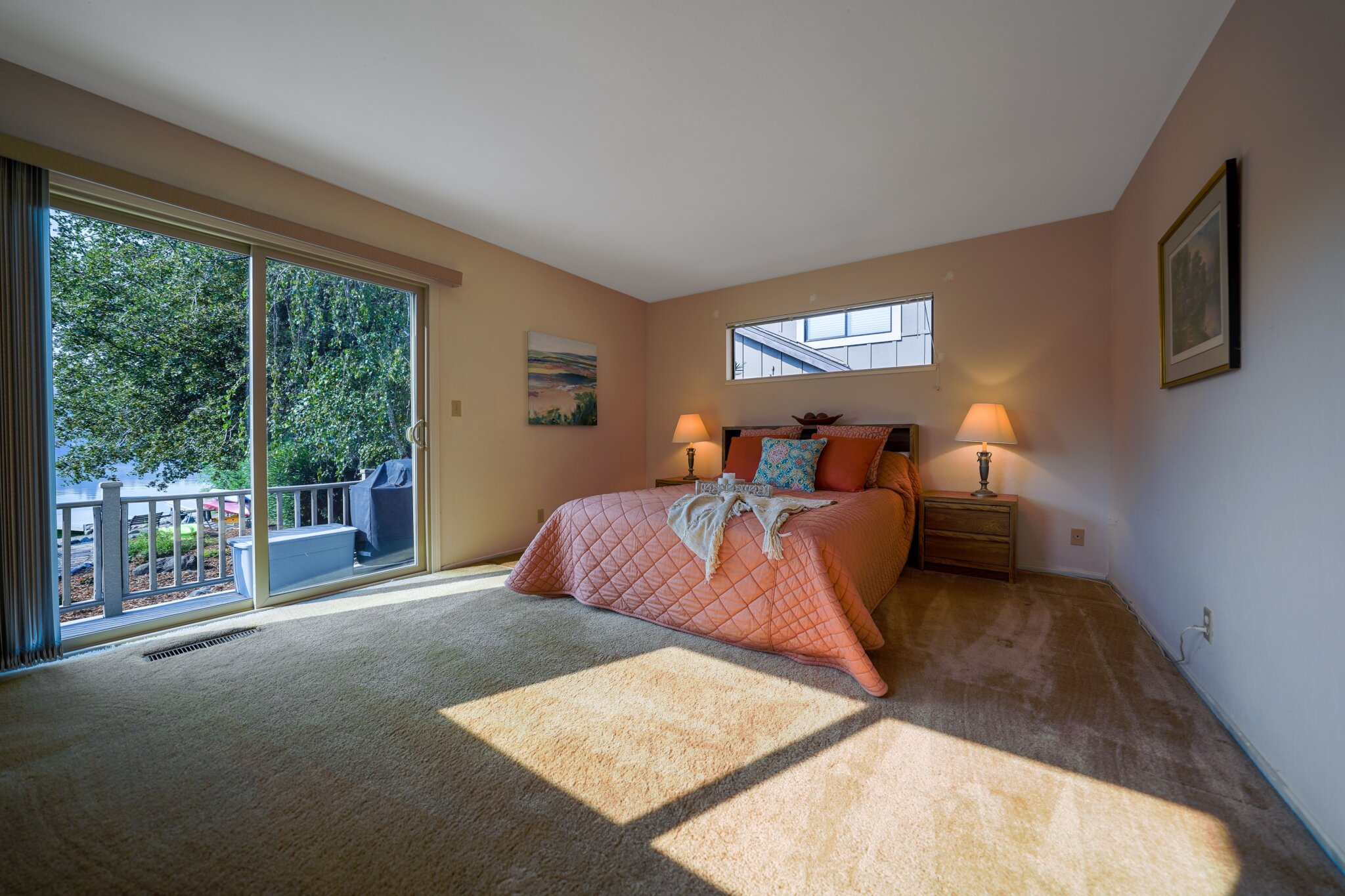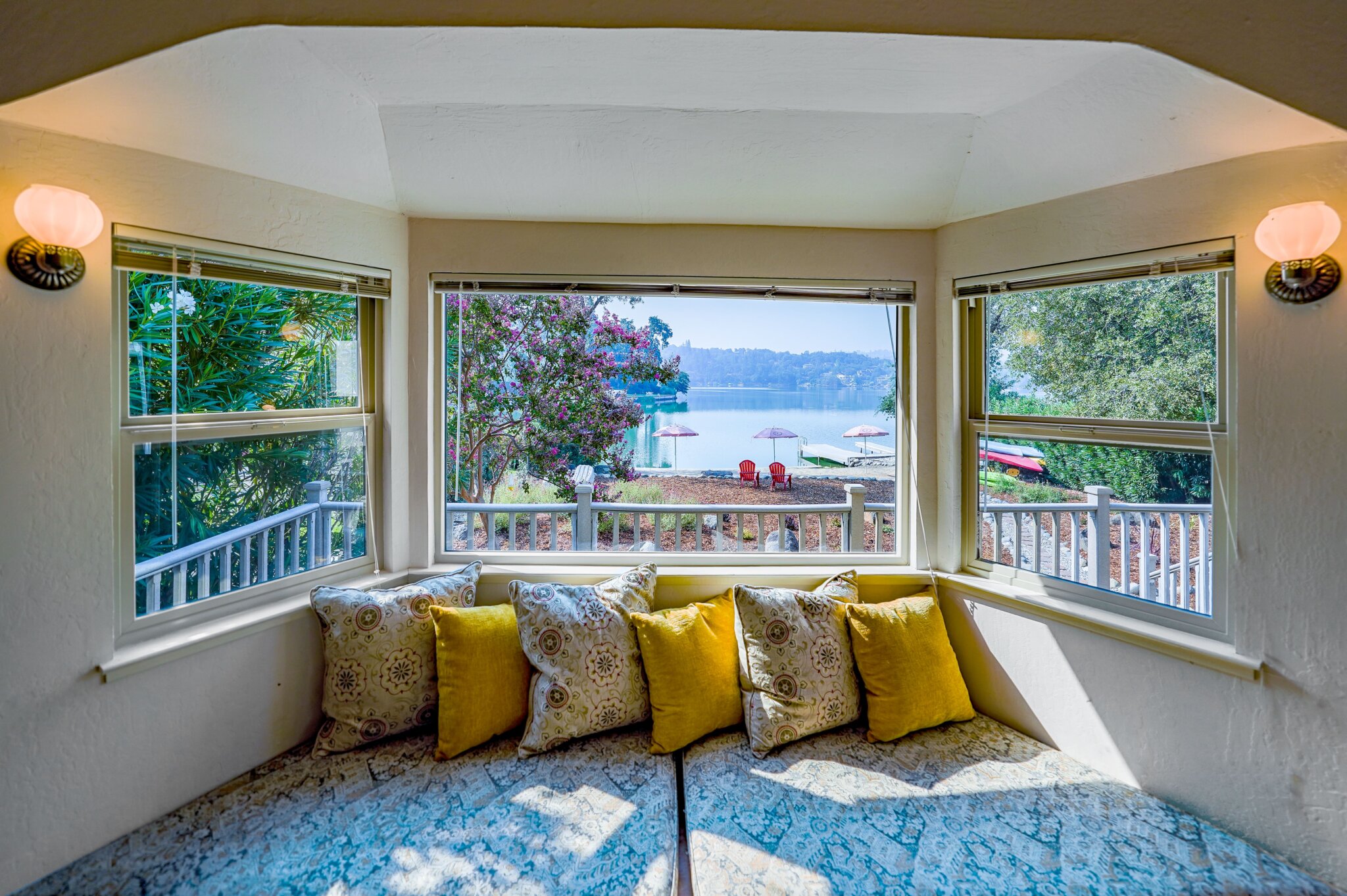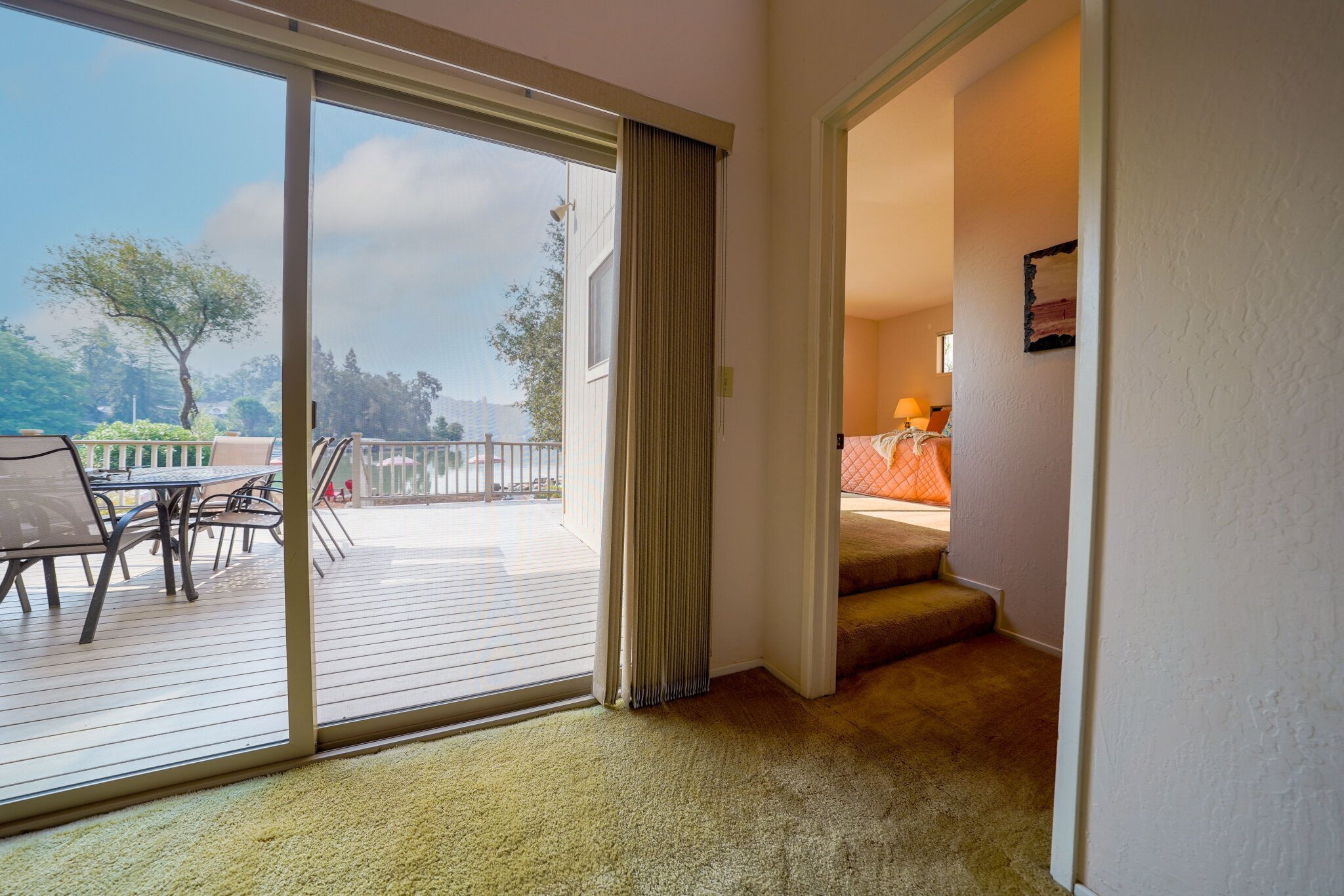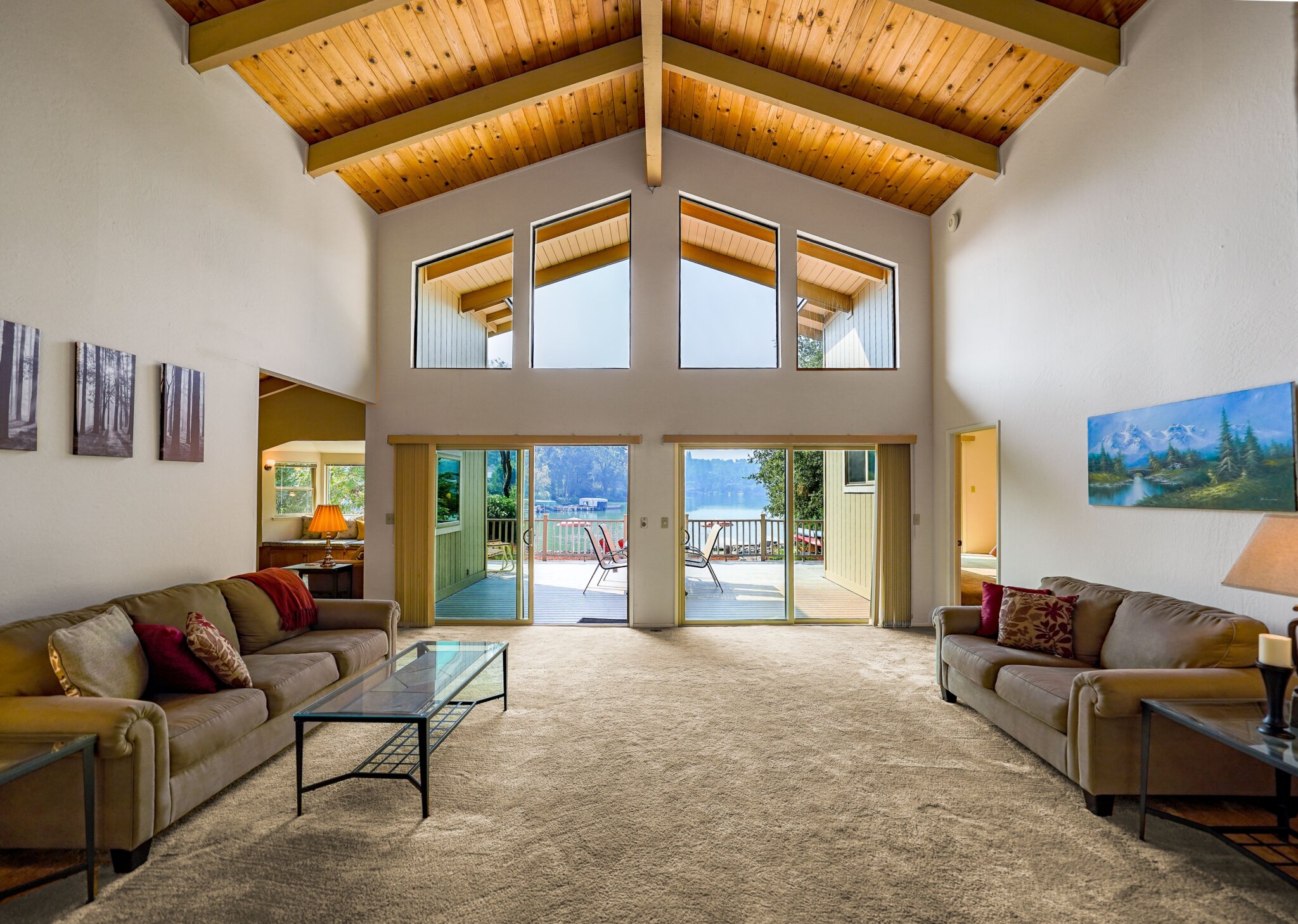 This project was a 3500 sq ft lakefront beach-style house with a spacious and substantial outdoor deck and umbrella table set to stage an oasis for the sun-lovers.