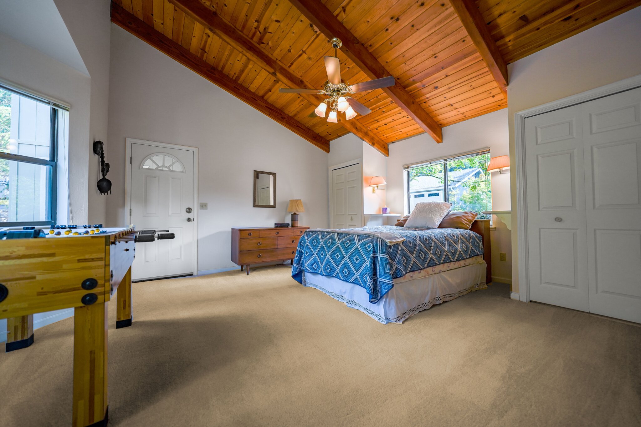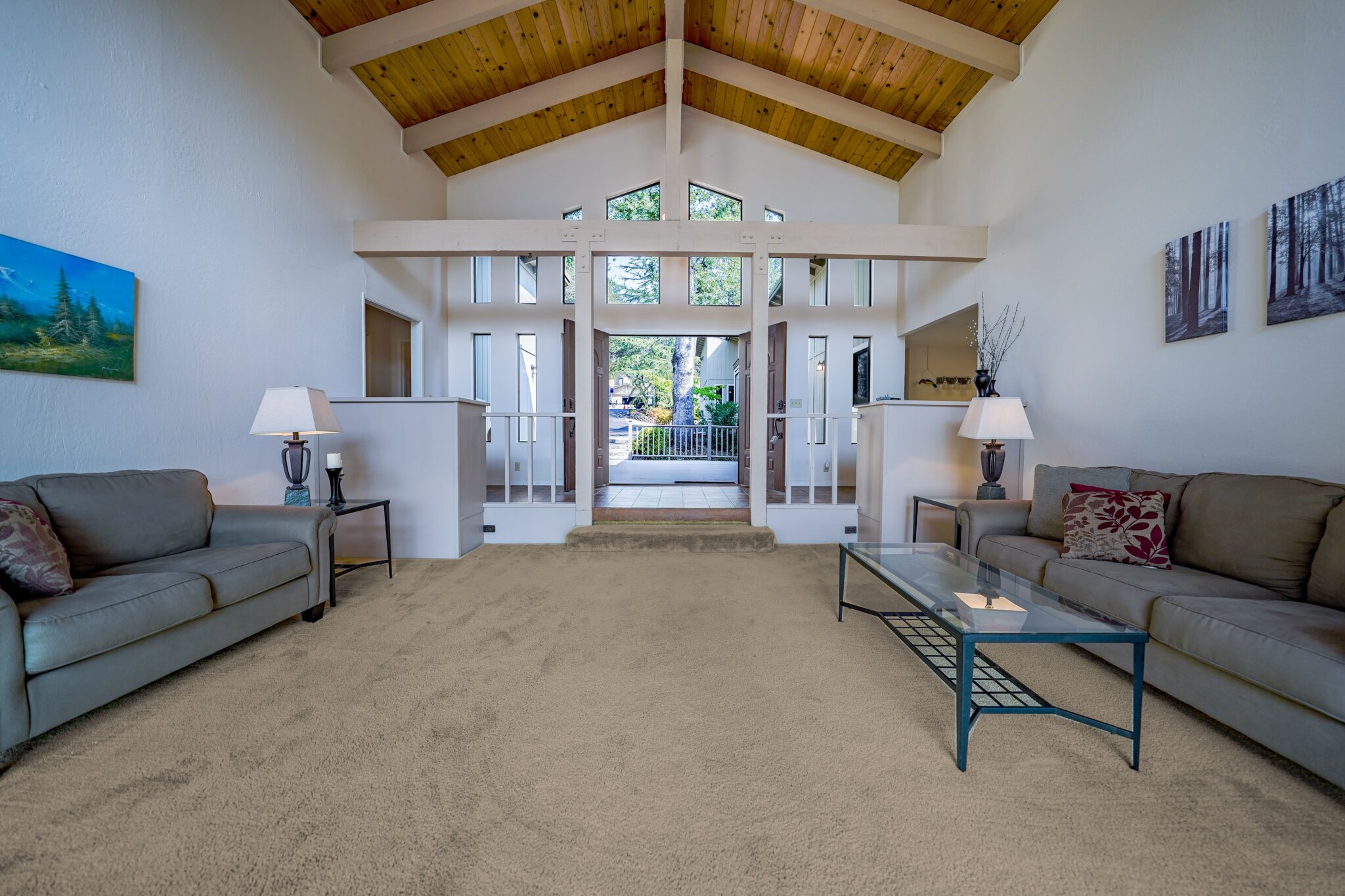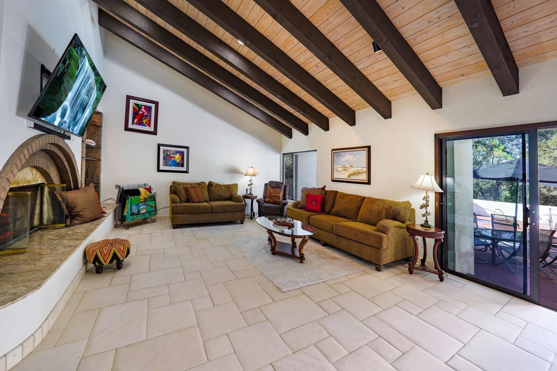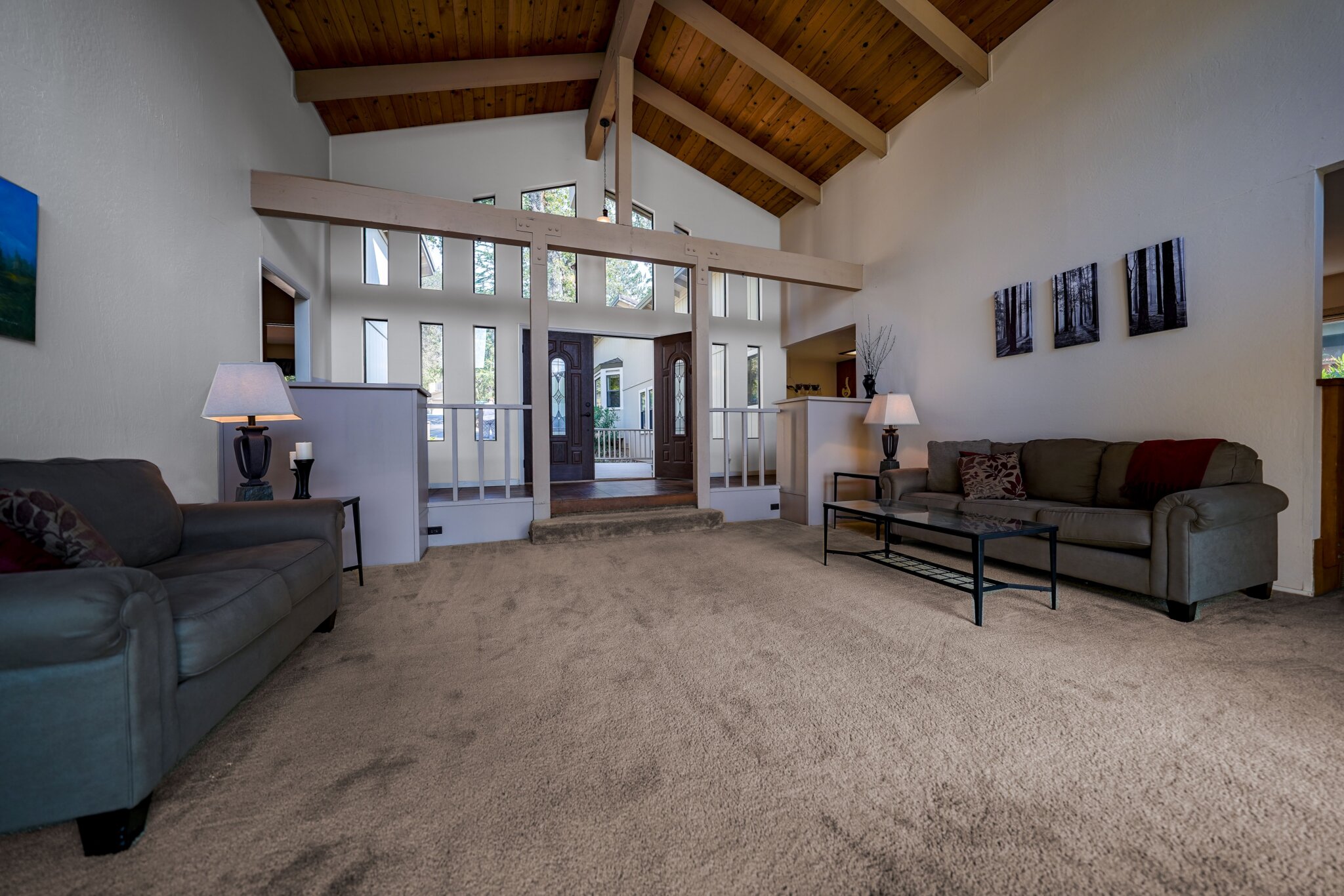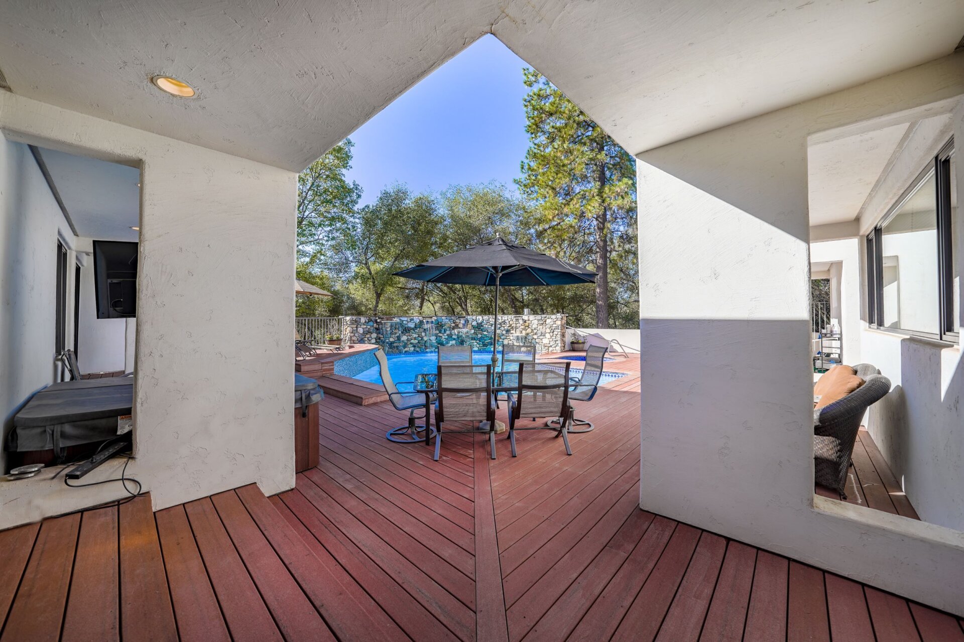 This project was a 3500 sq ft lakefront beach-style house with a spacious and substantial outdoor deck and umbrella table set to stage an oasis for the sun-lovers.