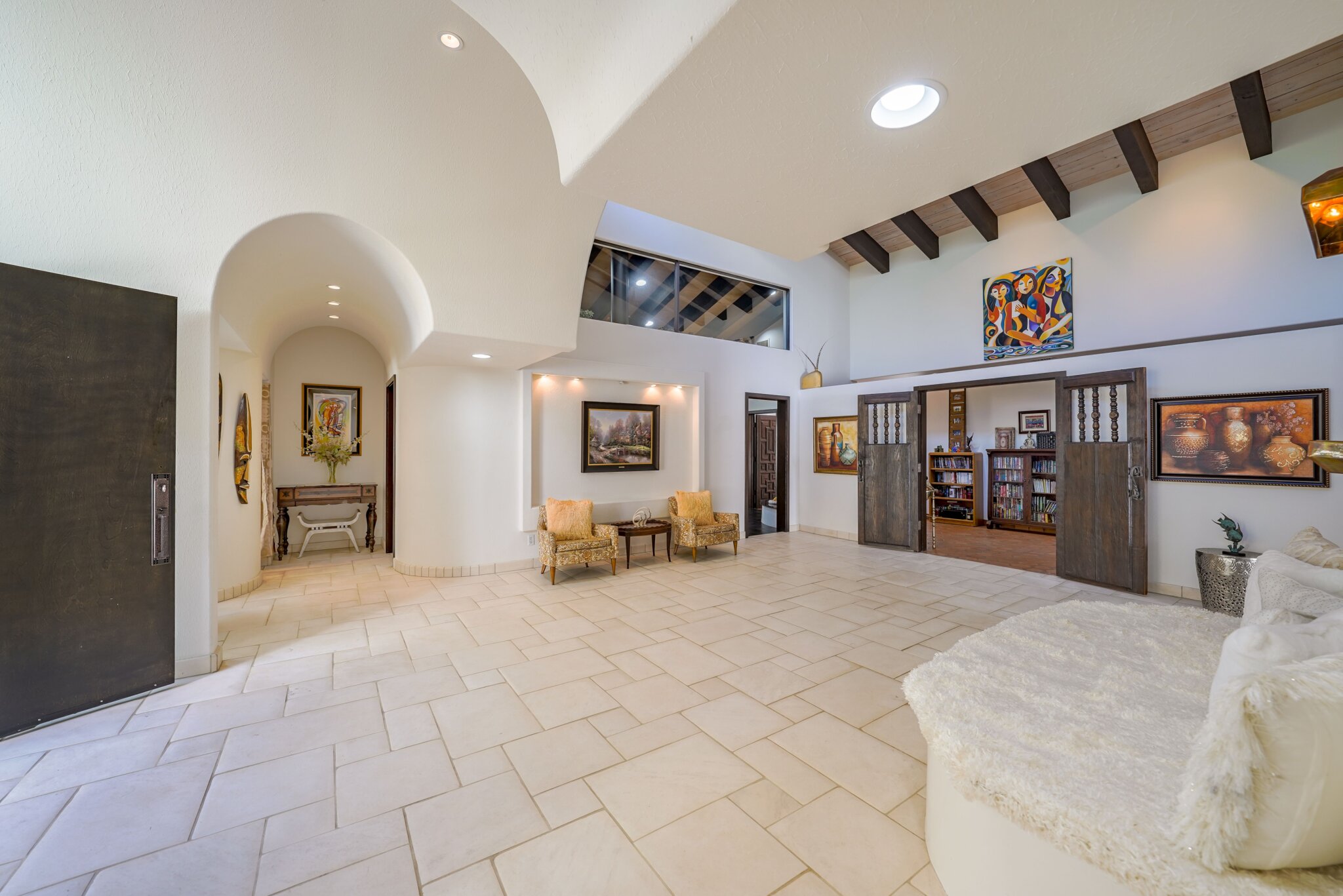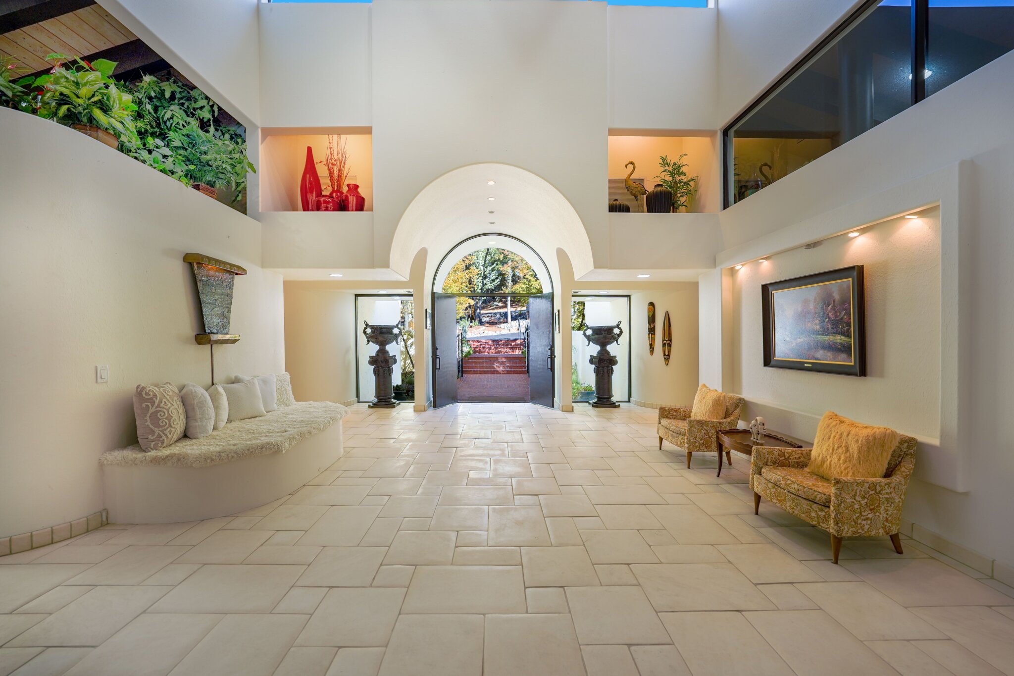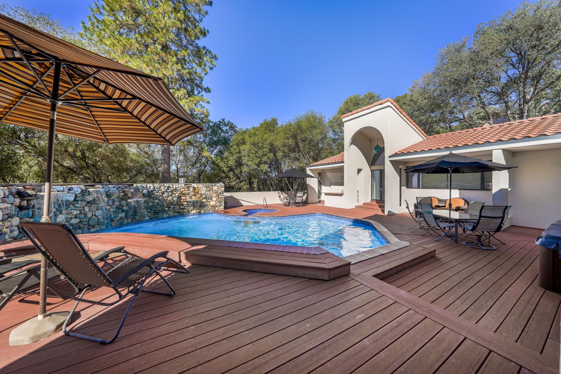 This home boasts of fountains inside and outside. The most stunning of all is the thundering waterfalls that pour from a 20 ft wide wall and spill into a backyard swimming pool creating a natural Shangri-la experience for entertaining family and friends.